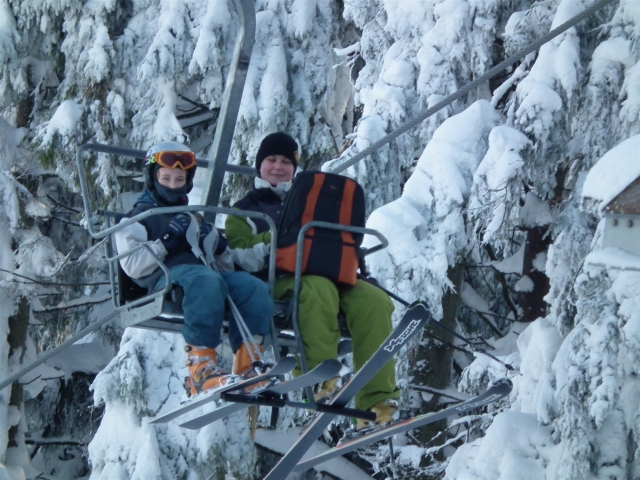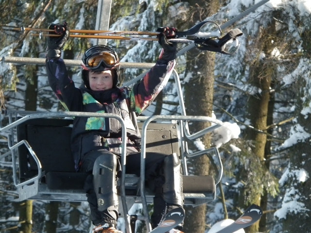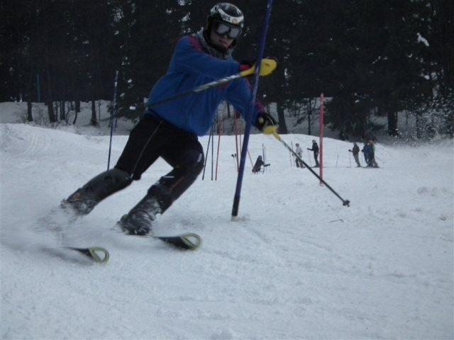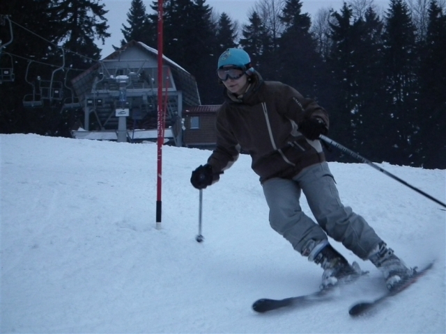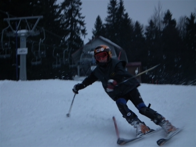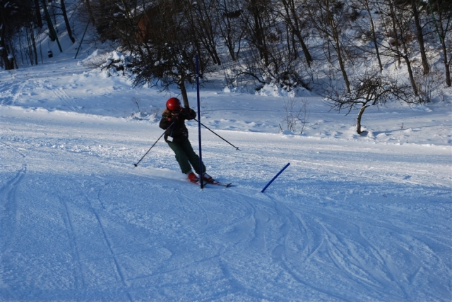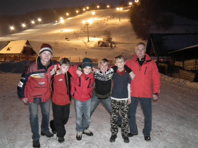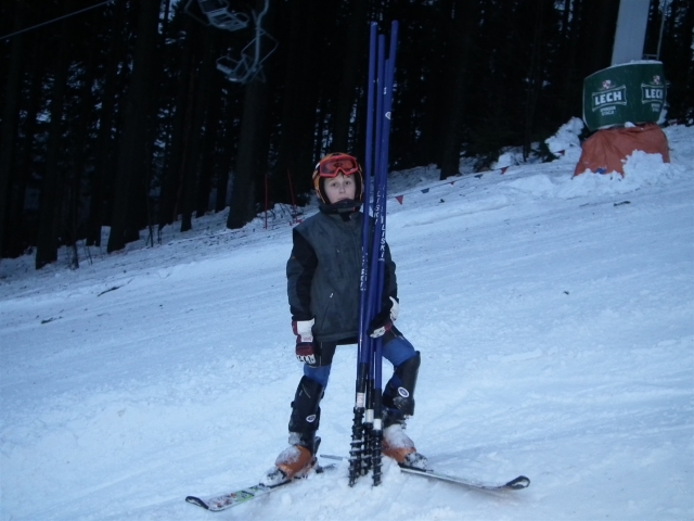 Piękne ośnieżone góry, szmer potoku, stok tylko dla nas, z oddali dochodzą rytmiczne odgłosy: trach.. trach.., trach, trach, trach! To nasza narciarska ekipa trenuje slalom na Stożku.