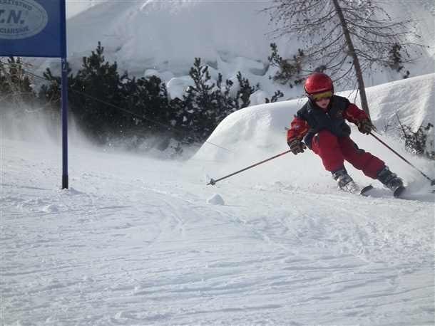 Podczas drugiego turnusu dominujące było słoneczko..ekipa dorosłych jak i dzieci porobiła ogromne postępy i przy okazji bardzo dobrze się bawili.. również na tym turnusie ostro trenowaliśmy slalom gigant i slalom. Antoś dyscyplinował wszystkich do punktualnego wychodzenia do rozstawiania tyczek.. do startu slalomu znowu z uśmiechem podchodziliśmy do startu..Tarvisio również nas słonkiem przywitało..piękne widoki, trasa z pucharu świata..porostu ah i oh...:)
