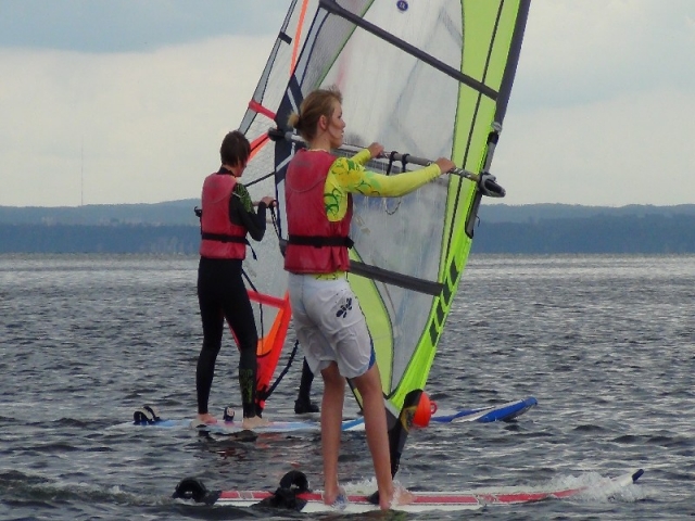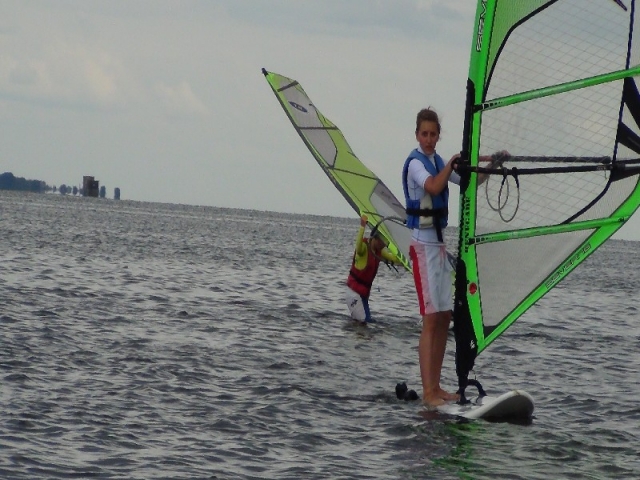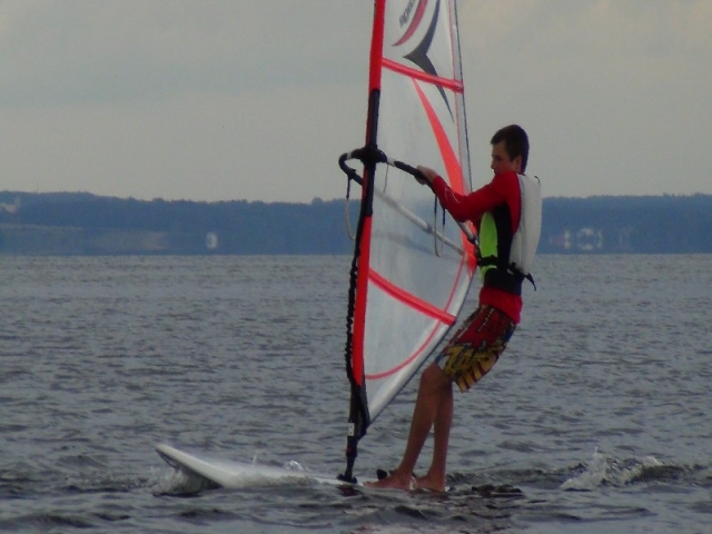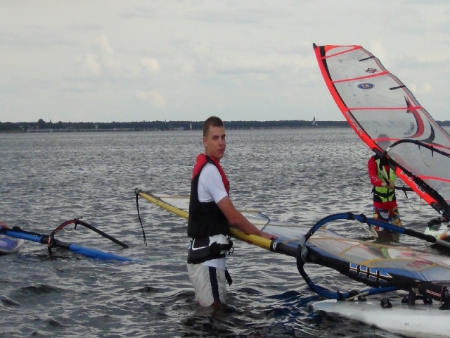 Dopiero co się zaczął a już się skończył… Warunki szkoleniowe w czasie pierwszego tygodnia lipca były wręcz wymarzone dla początkujących windsurferów jak i tych doświadczonych którzy chcieli przypomnieć sobie sztagi, rufy, helikoptery czy po prostu delektować się pięknem zatoki i wygrzać się na słoneczku. Pogoda w czasie drugiej połowy naszego obozu była idealna do ćwiczenia pływania ślizgowego. Grupa Pawła uczyła się nabierać szybkości, opanowywać pędnik przy porywistym wietrze oraz wykonywać zwroty przez sztag na za falowanym akwenie. Natomiast grupa Rafała ćwiczyła pływanie na trapezie, footstrapach oraz jeden z najtrudniejszych elementów w windsurfingu czyli zwrot z wiatrem w pełnym ślizgu. Oprócz zajęć na wodzie graliśmy w siatkę, organizowaliśmy ogniska, ciągaliśmy się na desce za motorówką no i oczywiście sumiennie ćwiczyliśmy na rozruchach:-) A na koniec były regaty!