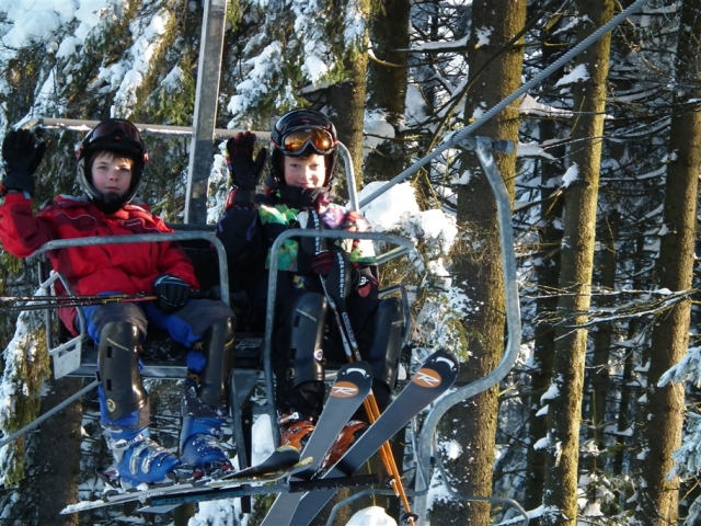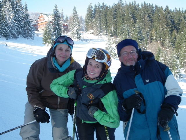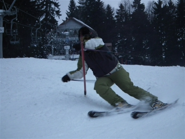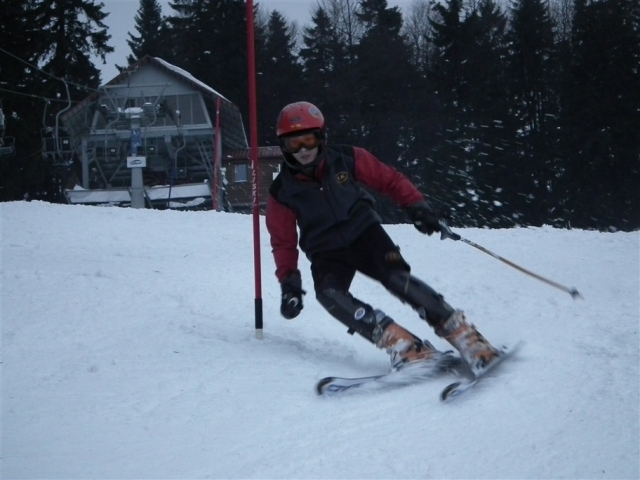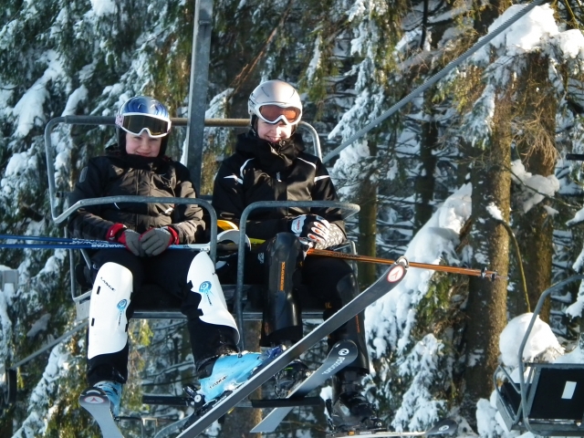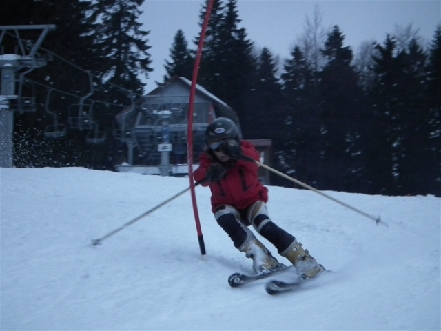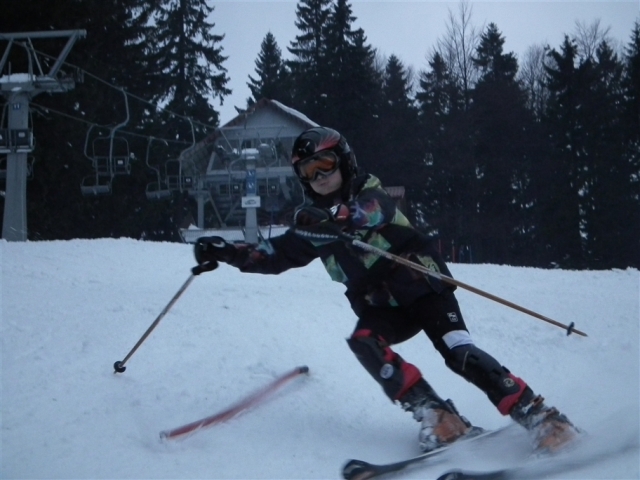 Piękne ośnieżone góry, szmer potoku, stok tylko dla nas, z oddali dochodzą rytmiczne odgłosy: trach.. trach.., trach, trach, trach! To nasza narciarska ekipa trenuje slalom na Stożku.