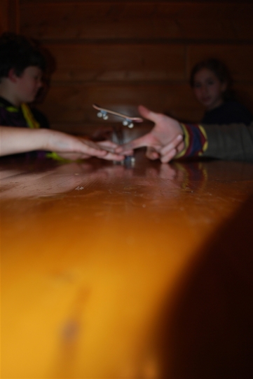 A slalom, to nie jedyna przyjemność obozu. Rozruchy pełne śpiewu i śmiechu. Trening i zawody w FINGER BOARDZIE, zorganizowane przez Jędrka i „Sosika”, które wygrała nasza koleżanka z Francji, Sophie! A nagrodą za konkurs haseł francuskich podzieliły się Ala S., Ala B., Justyna i Ania K.