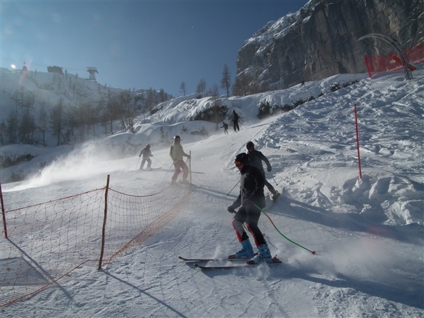 Podczas drugiego turnusu dominujące było słoneczko..ekipa dorosłych jak i dzieci porobiła ogromne postępy i przy okazji bardzo dobrze się bawili.. również na tym turnusie ostro trenowaliśmy slalom gigant i slalom. Antoś dyscyplinował wszystkich do punktualnego wychodzenia do rozstawiania tyczek.. do startu slalomu znowu z uśmiechem podchodziliśmy do startu..Tarvisio również nas słonkiem przywitało..piękne widoki, trasa z pucharu świata..porostu ah i oh...:)