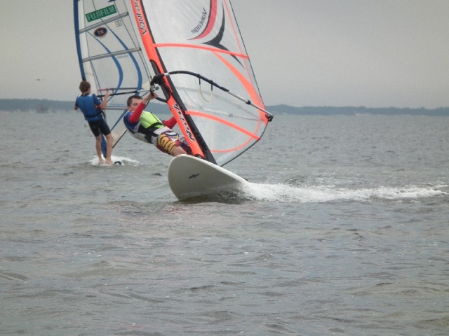 Dopiero co się zaczął a już się skończył… Warunki szkoleniowe w czasie pierwszego tygodnia lipca były wręcz wymarzone dla początkujących windsurferów jak i tych doświadczonych którzy chcieli przypomnieć sobie sztagi, rufy, helikoptery czy po prostu delektować się pięknem zatoki i wygrzać się na słoneczku. Pogoda w czasie drugiej połowy naszego obozu była idealna do ćwiczenia pływania ślizgowego. Grupa Pawła uczyła się nabierać szybkości, opanowywać pędnik przy porywistym wietrze oraz wykonywać zwroty przez sztag na za falowanym akwenie. Natomiast grupa Rafała ćwiczyła pływanie na trapezie, footstrapach oraz jeden z najtrudniejszych elementów w windsurfingu czyli zwrot z wiatrem w pełnym ślizgu. Oprócz zajęć na wodzie graliśmy w siatkę, organizowaliśmy ogniska, ciągaliśmy się na desce za motorówką no i oczywiście sumiennie ćwiczyliśmy na rozruchach:-) A na koniec były regaty!